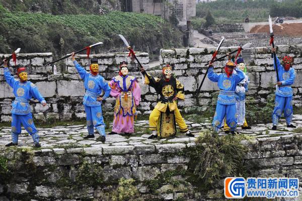 贵州省黔南州福泉阳戏是原始傩戏的一种,被誉为中国戏剧的“活化石”。为了抢救这一古老的剧种,福泉市近年来对这一戏种进行保护与传承,使这一古老的艺术重新焕发了生机。目前,福泉阳戏已被列入贵州省非物质文化遗产名录。图为福泉市民间艺人在表演阳戏。