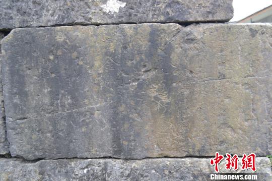 图为古庙石砖上刻的文字 荔波新闻中心供图