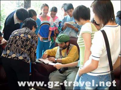 在贞丰的几天里,他走村串寨,与布依族群众和学生进行广泛的接触,不厌其烦的给他们签名、合影,并演唱《贵州旅情》、《贞丰旅情》。深受当地群众的喜爱。