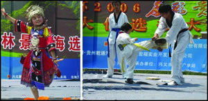 4月1日,在美丽的万峰林中,在充满节日气氛的铜鼓广场,备受关注的“国酒茅台”杯2006多彩贵州旅游形象大使选拔大赛兴义赛区海选赛在这块藏在深闺的宝地隆重举行。