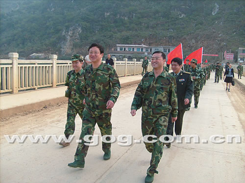 10月28日,黔西南州60名中青年干部在州委书记陈敏、州长陈明鸣和州委副书记廖飞的带领下,重走红军长征路,缅怀革命先烈在黔西南战斗和生活的光辉足迹(如图),使广大干部接受革命传统、州情和国防知识教育,现场感受长征精神实质,增强团队精神,成为建设和谐黔西南的生力军。