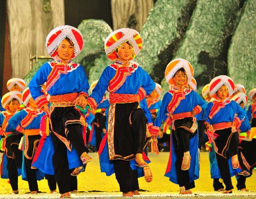 10月9日,彝族青年在演出民族文艺节目。