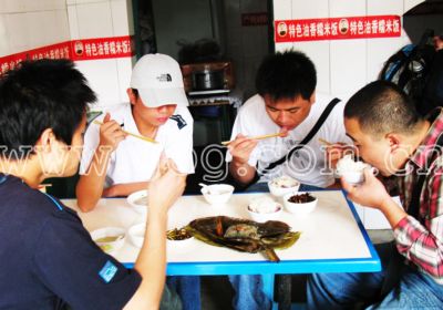 贞丰县糯米饭闻名四方已久。自去年该县大张旗鼓对当地名特小吃进行评选、宣传以来,当地的油糯米饭、粽子、糕粑等以糯米为主料的小吃备受各地游客青睐。这是一批来自云南的游客在品尝油糯米饭。