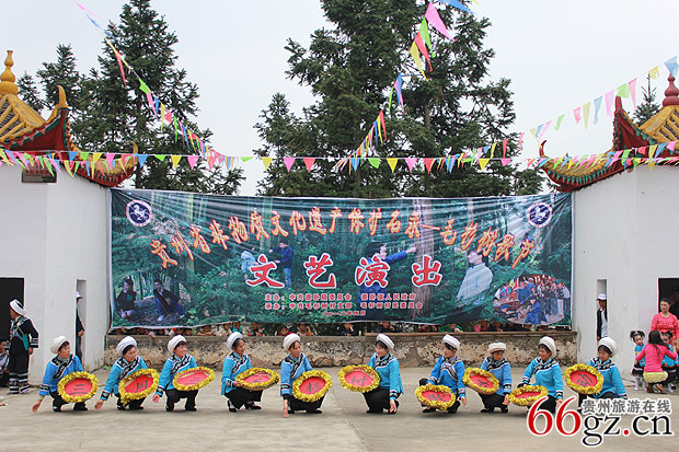 “毛杉树歌节”是布依族的传统节日,每年逢农历三月初三以后的第一个“蛇场天”,都在毛杉树村如期举行。节日期间,附近的青年男女盛装打扮,相互邀约赶来此地对歌找朋友,用原生态的歌声和舞蹈等方式来庆贺节日。主要内容有祭奠寨神、青年男女对歌“浪哨”、文娱活动等。