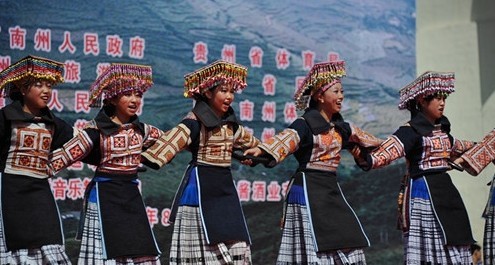 晴隆县三宝彝族乡是原生态舞蹈“阿妹戚托”发源地,彝族原生态群舞《阿妹》为开幕式拉开了帷幕,表演内容采撷其经典动作和文化元素。在彝族同胞的喜庆日子里,苗族表演队为彝族兄弟带来一个精彩节目《格尼角抓旯》,充分体现了民族大团结的精神。