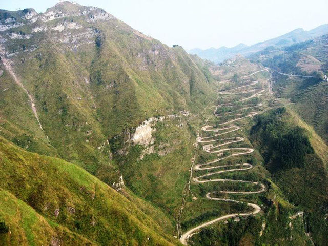 二十四道拐是个地名,是一段二十四道弯的公路,古代称鸦关,当地人又称之为半关,位于贵州省晴隆县城南郊1公里处。二十四道拐盘旋曲行于雄峻陡峭的睛隆山脉和磨盘山之间的一片低凹陡坡上,有一夫当关,万夫莫开之势。