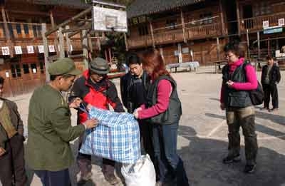 与探险小分队同行的还有本报与贵州联通公司给水尾乡的村民们带去的数百件过冬衣物,它们将随小分队的行程,沿途分发到当地村民们的手中。出发仪式上,部分困难村民也分到一些衣物。