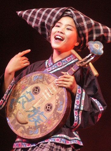 9月21日,一位布依族姑娘表演八音坐唱。