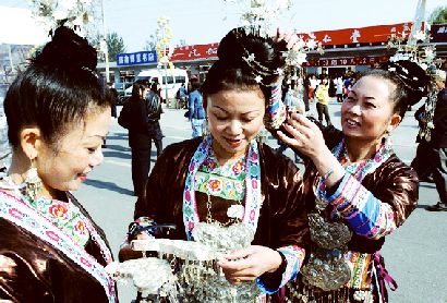 10ÔÂ22ÈÕ£¬À´×Ô¹óÖÝÊ¡ÀèÆ½¶±×å´ó¸èÍŵÄÎâÓÀÇí£¨×ó£©Èý½ãÃÃÔÚ¡°Ê×½ìÖйúËÎׯÎÄ»¯ÒÕÊõ½Ú¡±ÉÏÕû×±×¼±¸±íÑÝ¡£µ±ÈÕ£¬µÚÈý½ìÖйúÄϱ±Ãñ¸èÀÞ̨ÈüÔÚ±±¾©ÊÐͨÖÝÇøËÎׯÎÄ»¯ÒÕÊõ½ÚÉÏÀ­¿ªÐòÄ»¡£À´×ÔÈ«¹ú20¶à¸öÊ¡¡¢ÊС¢×ÔÖÎÇø56¸öÃñ×åµÄ150¶àλÃñ¼ä¸èÊÖ£¬¼°ÖÚ¶àÖøÃûÊé»­ÒÕÊõ¼ÒÆë¾ÛËÎׯ¡¢Í¬Ì¨Ï×ÒÕ¡£