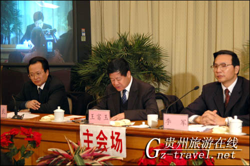 贵州省委副书记王富玉(中),省委常委、省委宣传部部长李军(右),副省长蒙启良(左)