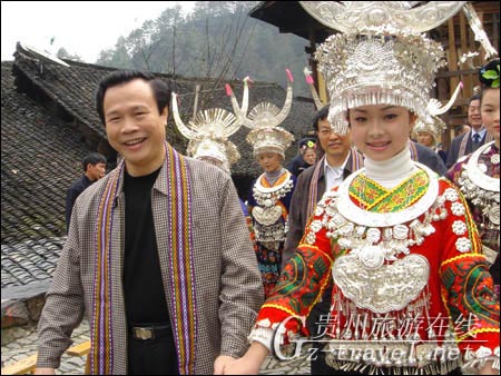 海南省政府副省长陈成(左一)考察贵州雷山上郎德苗族村寨