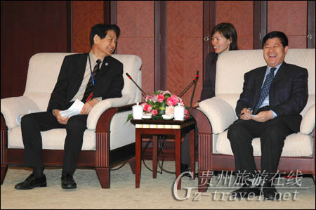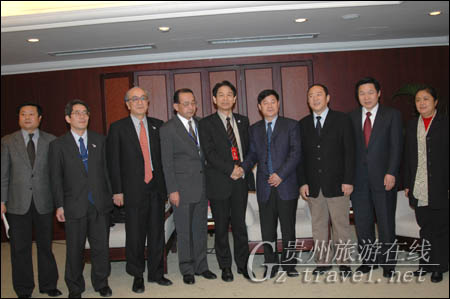 3月20日下午,贵州省委副书记王富玉、省政府副省长张群山在贵阳会见了日本旅行业协会代理会长、考察团团长山本芳孝一行。王富玉同志介绍了贵州的省情,山本芳孝对贵州方的热情接待表示感谢,并赠送了礼品。国家旅游局驻东京办事处主任张西龙、省旅游局局长杨胜明、副局长傅迎春、省外办负责同志会见时在座。