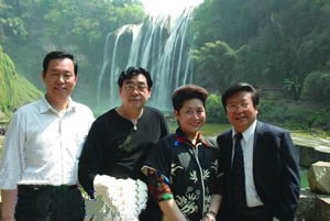 图为魏明伦、黄婉秋、谢天成、何有才(从右至左)昨日在黄果树游览。
