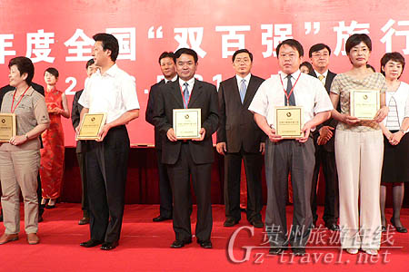 5月31日,在广州增城国家旅游局举行的2005年度全国“双百强旅行社表彰大会”上,贵州山水旅行社和贵阳旅行社从全国一万六千多家注册旅行社中突出重围、脱颖而出,荣登中国旅游第一品牌的金榜,贵州山水旅行社在国内旅行社“百强”中排名第53位,贵阳旅行社排名第65位。贵州山水旅行社是第二次获此荣誉,第一次获得国内旅行社“百强”是在上一个世纪的一九九九年,当时排名第38位。六年来,由于全国“百强”旅行社入选难度增大、竞争激烈,我省旅游企业已多年未入围全国百强名单,这与我省旅游资源大省的地位很不相称。这次贵州山水旅行社再次获得“百强”旅行社称号,从一个侧面反映出我省2005年开展的“多彩贵州”为品牌的旅游宣传活动已经见到了切实成效。贵州山水旅行社不但为自己的企业赢得了荣誉,也为贵州旅游争了光彩!