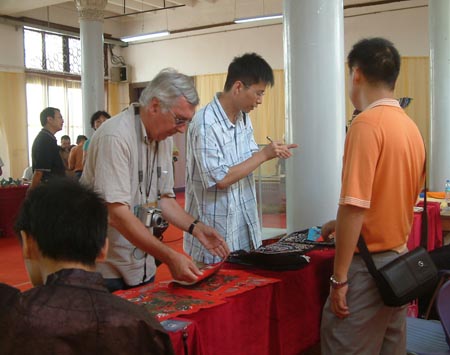 一位法国客人在一个刺绣台前驻足良久,等我再次遇见他时,他已兴致勃勃满载而仍不肯离去。