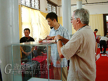 9月4日,结束了对黔东南、黔南为期三天的乡村考察,参加“2006年乡村旅游国际论坛”的嘉宾们返回林城,来到贵州省博物馆,参观这里的“两赛一会”民族工艺品展览。