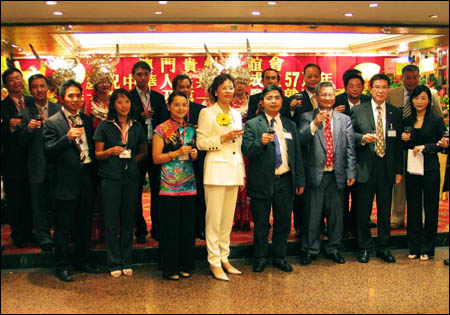 澳门贵州联谊会是以联络居住在澳门及海外的贵州乡亲或该等与贵州有关人士、社团,增进联谊,发扬爱国爱澳精神,加强团结,支持贵州建设为宗旨的非牟利团体。该会由贵州省政协澳门区委员、贵州海外联谊澳门区理事牵头发起,已于今年七月完成筹组工作,并成功召开了第一次会员大会,选举出首届领导机构,目前有会员三十多名,并有更多关注贵州发展及建设的澳门人士陆续报名入会。昨日该会在联邦酒楼举行成立大会,第一届监理事宣誓就职,同时一起庆祝中华人民共和国成立五十七周年。