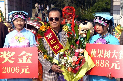 12月17日,台湾省游客杨昌泽幸运地成为黄果树风景区2006年第300万位游客。