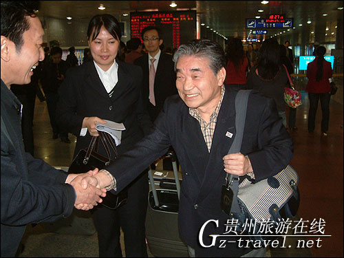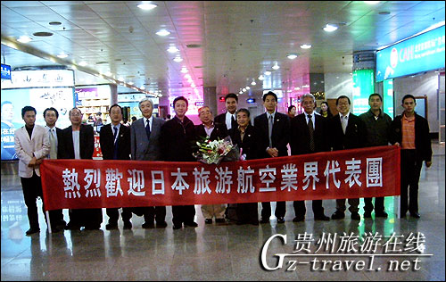 4月27日下午,日本旅游航空业界代表团部分代表抵达贵阳。此次考察将为期三天,期间将与贵州省委省政府、外交部、国家旅游局领导会晤,与贵州方共同举办“中国贵州与日本旅游业界交流座谈会”,参加“中日旅游友好樱花园”的揭幕仪式,考察贵阳市经济产业并参加经济旅游合作交流座谈会,向贵阳市政府赠送大贺莲种苗,到贵州大学演讲,考察黄果树、青岩古镇等系列活动。