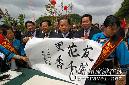“樱花传友谊,中日共繁荣”。4月29日,“中日旅游友好樱花园”揭幕仪式在安顺天龙举行。副省长蒙启良,省有关部门领导,安顺市有关部门同志及二阶俊博一行出席揭幕仪式。