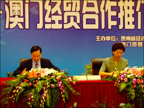 ¹óÖÝÊ¡ÂÃÓξָ±¾Ö³¤ÀîÈýÆì£¨×ó£©Í¬°ÄÃŹóÖÝÁªÒê»á»á³¤ÑîÐãÈÙ£¨ÓÒ£©Ç©ÊðÐÒé