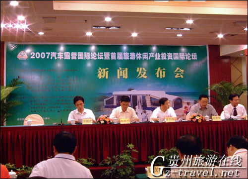 为树立中国汽车消费文化的消费理念,创建中国汽车休闲旅游的新模式,提升贵州旅游和体育的创新品牌,贵州省旅游局与贵州省体育局联手主办“2007汽车露营国际论坛暨首届旅游休闲产业投资国际论坛”,新闻发布会今日在神奇华美达酒店召开。据了解,本次论坛将于2007年9月25日至28日在国家级旅游景点红枫湖水上基地召开。