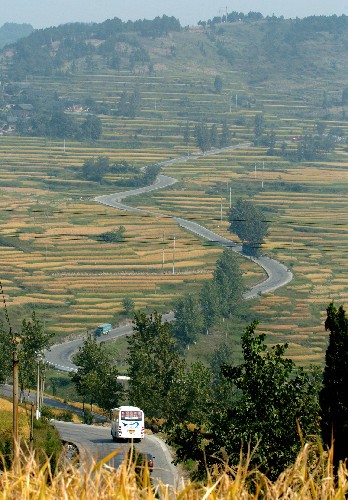 汽车行驶在黔东南苗族侗族自治州的乡村公路上。