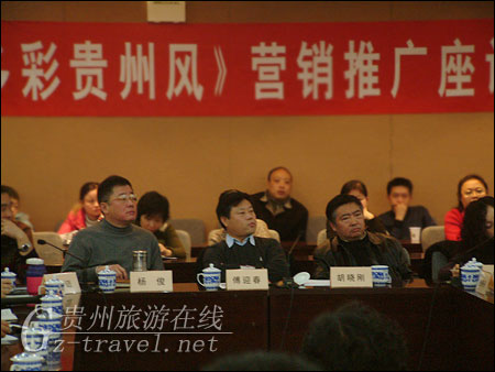 本站讯 2008年1月4日,应2008奥运年,贵州省旅游局召开了“奥运年‘多彩贵州风’营销推广座谈会”。贵州省旅游局傅迎春副局长、贵州省旅游局杨俊副局长、省委宣传部相关领导以及贵阳市旅游局局长胡晓刚、“多彩贵州风”组委会经理等出席了本次座谈会,出席本次座谈会的还有贵阳市各旅行社经理、旅行社计调、酒店负责人代表以及各大新闻媒体。