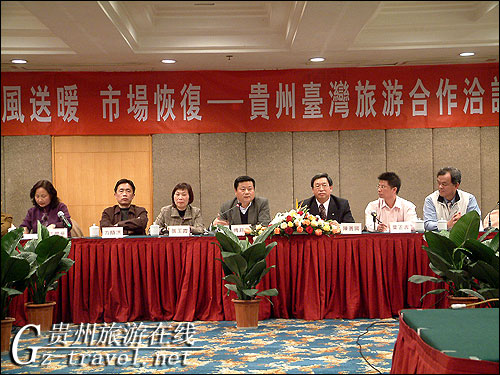 贵州台湾旅游合作洽谈会”。会议由贵州省旅游局市场处处长张鹏华主持,贵州省旅游局副局长傅迎春、贵阳市旅游局副局长方随洪等出席了会议,省内多家旅行社到会,贵州电视台、贵州日报、贵州都市报以及贵州旅游在线等省内多家媒体以及新闻单位对会议进行报道。