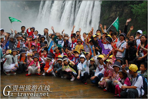 6月1日, 当日,来自四川地震灾区的70多名儿童来到贵州安顺黄果树景区游览,并与黄果树镇的儿童一起欢度“六一”国际儿童节。