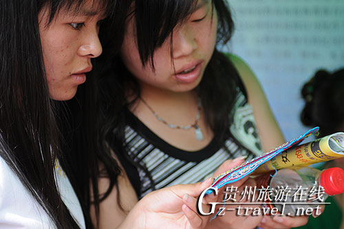 ¹óÑôÊÐÃñÔÚË®×åÂíβÐåչ̨ǰ²Î¹Û¡¢×ÉѯÂíβÐ幤ÒÕ¡£