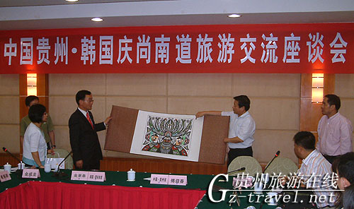贵州省旅游局副局长傅迎春向韩国客人赠送礼品