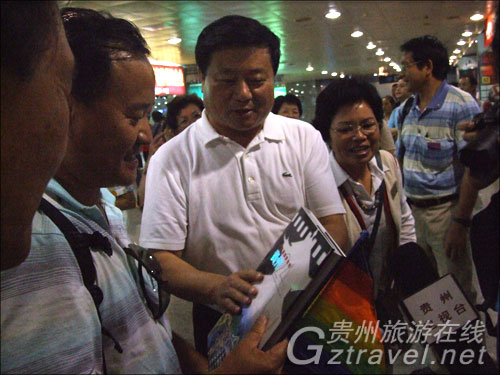 贵州省旅游局傅迎春副局长向台湾游客赠送贵州画册