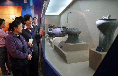 10月30日,观众在贵州省博物馆观看展出的文物。