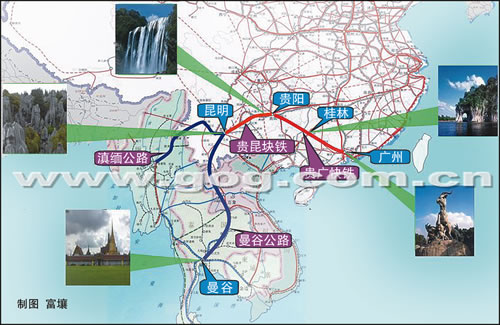 -贵广快速铁路和贵昆快速铁路的加快实施,将与昆曼国际公路连接在一起,形成一条不输于欧洲任何一条精品旅游线路的世界级观光旅游线路。