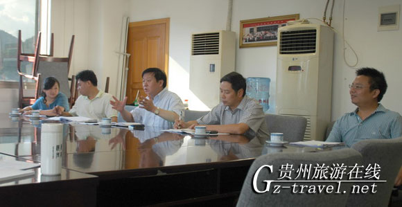 黄康生副省长(中)、吴跃副秘书长(右二)并省政府办公厅相关处室负责人一行5人到省旅游局调研。