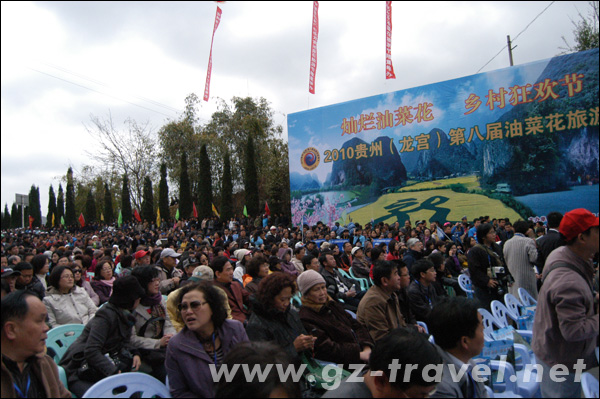 据悉,本届贵州(龙宫)油菜花旅游节改变了往届以大型歌舞开场的风格,而以营造热烈和谐的节庆氛围,重在游客参与性、娱乐性为主,内容由开幕式、民俗民间文艺展演、特色旅游商品设计及展示、观音洞祈福法会、“龙宫杯”贵州生态旅游摄影大赛等组成,游客在这里既能够赏花又能够感受到浓烈的节庆氛围。