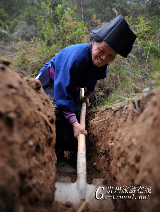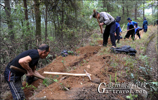 2010年4月4日,贵州省丹寨县龙泉镇羊甲村的苗族村民自发到离村11公里外的山里挖渠引水,以解决连续干旱带来的用水困难。持续干旱使羊甲村村内的水井全部枯竭,为了解决饮水困难,村民们不等不靠,进行抗旱自救。
