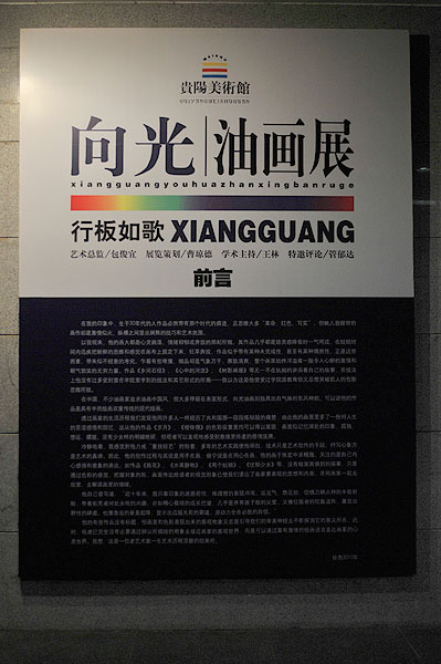 本站讯 2010年9月22日,向光油画展在贵阳美术馆开展。本次展览展示了向光老先生一生不同时期的不同作品,共计68件,向观者展示了一位艺术家的成长历程、生活经历,更展现了他在艺术中的所产生的激情与火花。此展览是贵州省的一次艺术盛宴,吸引了全省许多热爱艺术、从事艺术、学习艺术的各类人士前来参观。
