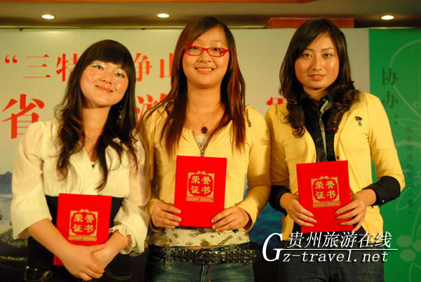 记者从大赛组委会获悉,本次“三特梵净山”杯全省导游大赛决赛中获得中、英文组金奖的选手,省旅游局、共青团贵州省委、省妇联分别授予了“全省旅游行业技术能手”、“2010年贵州省优秀导游员”、“青年岗位能手”“贵州省三八红旗手”称号。获得中、英文组银奖的选手,分别授予了“全省旅游行业技术能手”、“2010年贵州省优秀导游员”、“青年岗位能手”“贵州省巾帼建功立业标兵”称号。获得中、英文组铜奖的选手,省旅游局授予了“全省旅游行业技术能手”、“2010年贵州省优秀导游员”称号。经各地初赛选拔进入全省决赛的选手免当年年审,决赛中获得中、英文组金奖选手,将代表贵州省参加2010年12月初在西安举行的全国导游大赛总决赛。