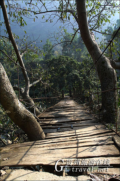 盘县历史悠久,有许多历史悠久的桥,但是这样有特色的小桥却不多,小桥周围绿树成荫,河水潺潺,环境很清幽,毛虫钢丝桥到现在已经有几十年的历史了吧,是很古老的桥了,走在上面都让人感觉战战兢兢,几乎没有人再走了。