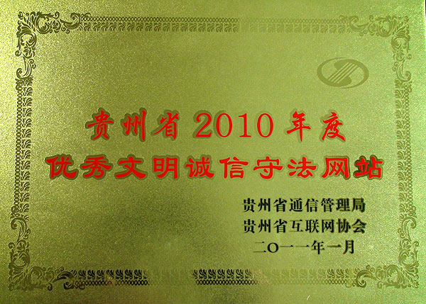 本站讯 1月7日,贵州旅游在线网站荣获“贵州省2010年度优秀文明诚信守法网站”称号,并颁发了荣誉证书并授牌。 2010年12月,为了加强我省网络文化建设,鼓励互联网站诚信守法、文明办网,为广大网民提供更好的信息服务和更丰富的网络文化产品,营造文明、和谐的绿色网络环境,贵州省互联网协会举办了诚信网站评选活动,贵州旅游在线参加了此次评选活动,历时一个月,经过网站申报、网络投票、专家统一评审、评选结果公示,最终贵州旅游在线获得了此项荣誉。