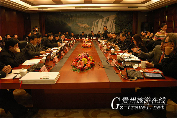 在汇报会上,贵州黄果树旅游集团股份有限公司董事长程勇对《范》的情况进行了基本的介绍后,美国ui公司主席托马斯•卡之罗斯基、董事黄建平开始做汇报,他们在历时一年多对安顺景区的考察调研之后,对黄果树乃至整个安顺市的旅游发展进行了规划,力争把安顺把贵州打造成为国际性的旅游地点,几个小时的汇报会让我们看到了贵州旅游发展的新方向。