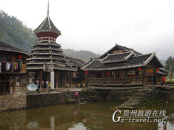 清晨,在肇兴小学俯瞰寨子的全景,这里能够将五座古楼全部收进镜头。拍照后,踏着晨雾,沿风雨桥一座一座地细品,听到哗啦的流水、农人的吆喝,小孩的喧闹,感觉这也许就是另外一种自得的生活。