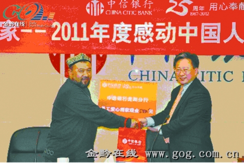 近日,中信银行贵阳分行专门邀请了“2011年度感动中国人物”阿里木·哈力克,到贵阳分行为全行员工讲述他的先进事迹。报告会后,贵阳分行举行了爱心助学捐赠仪式,全体员工积极踊跃地奉献爱心,自发捐款共计51850元,其中,杨洪行长带头把省政府奖励其为贵州经济更好更快发展做出积极贡献的2万元个人奖金悉数捐出。据了解,这笔捐款将用于给毕节贫困山区希望小学购置桌椅,改善学习条件。