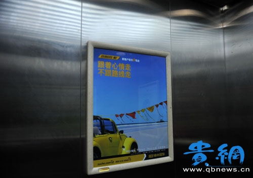 租车市场火爆,租赁公司把广告打进了电梯里。