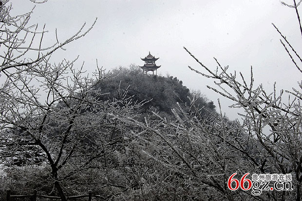 连续的低温雨雪天气给万山矿山公园裹上了一层银装