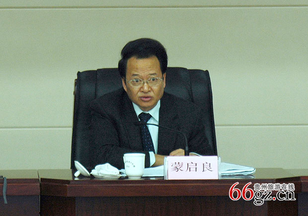 贵州省副省长蒙启良出席主会场会议并讲话,省政府副秘书长王文阳主持会议,在各市(州)设分会场。省直有关单位负责人、贵阳市及所辖各区(县、市)旅游局负责人、部分100个旅游景区项目投资主体及重点旅游企业和院校旅游系负责人在主会场参会。