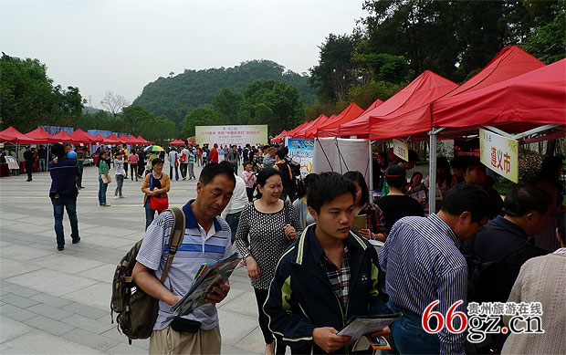贵州旅游在线讯 5月19日是第三个中国旅游日(国务院于2011年确定《徐霞客游记》开篇之日即5月19日为中国旅游日),在《国民旅游休闲纲要》正式发布,《中华人民共和国旅游法》定于10月1日实施的大好形势下,贵州省和贵阳市旅游部门在贵阳市小车河湿地公园,举行贵州·贵阳“中国旅游日”暨“赏美景、爽爽户外游”和微博名人贵阳行启动仪式及户外游千名游客签名活动”,现场有30多家景区、旅行社、星级宾馆推出多项“特惠日”优惠项目,吸引上万名中外游客踊跃参加,感受生态、享受旅游。