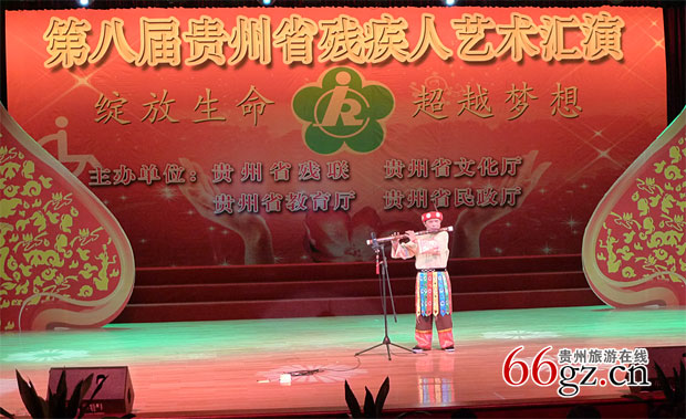 贵州旅游在线讯 日前在贵阳举行的第八届贵州省残疾人艺术汇演中,黔南州代表队的盲人选手王建忠演奏的莽笛独奏《水乡情歌》,虽受音响过大的影响,仍夺得器乐比赛三等奖,同时参加《绕家大歌》合唱获声乐类二等奖,再次向人们展示出他心中的美丽世界。